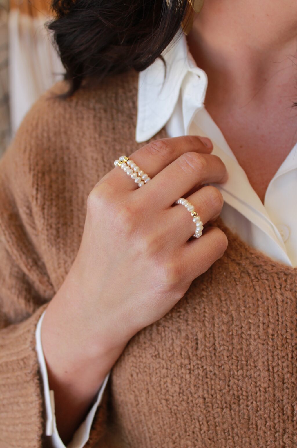 Simple and gorgeous pearl beaded stretch ring with a gold filler bead, perfect for stacking or wearing solo!