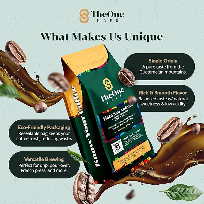 - Specialty Coffee Grounds Dark Roast: Experience a smooth, rich, and balanced flavor with TheOne Kafé Guatemala coffee ground. Each cup is a bold yet refined experience—made to satisfy true coffee lovers from the first aroma to the final sip.