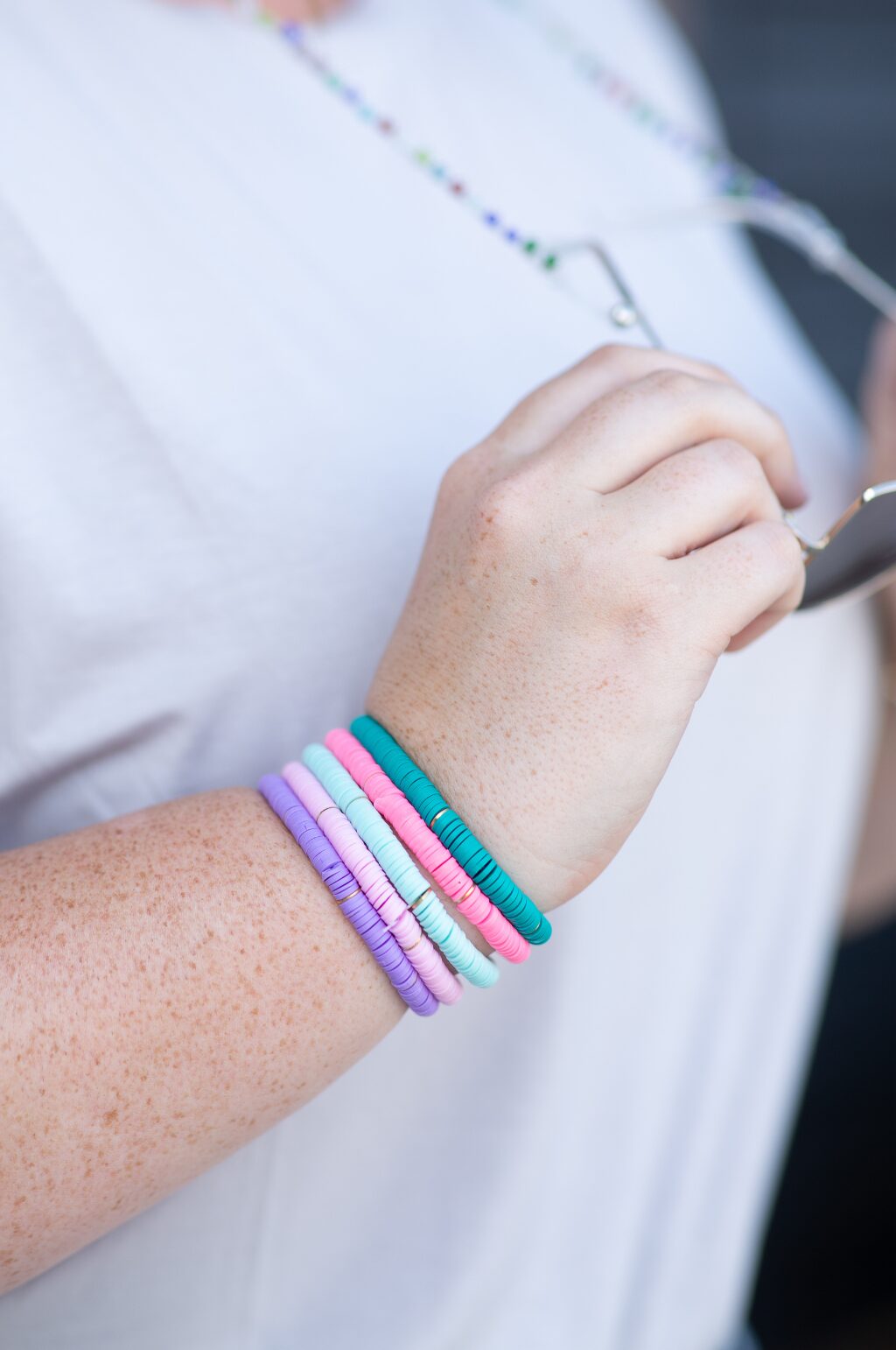 Made in the perfect hues of the rainbow, this lightweight bracelet stack is perfect to add pops of color to your ensemble. Named after SoSis sista, Monica, this fun bracelet stack is quietly stylish and dependable – much like its namesake. Our suggestion is to stack 6-8 of them… the more the better 😉