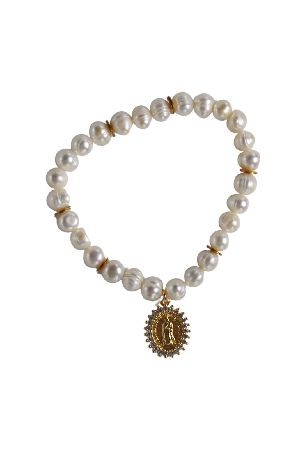 You won’t see this gorgeous bracelet just rolling on the river – The Pearl Mary bracelet is crafted with freshwater pearl beads with hints of gold and a dazzling gold Mary charm on stretch bracelet cording. The Proud Mary may keep on burnin’ but The Pearl Mary is gonna keep on stunnin’!