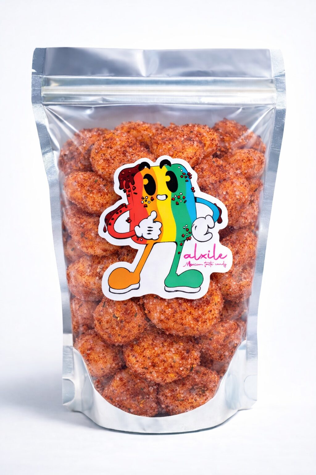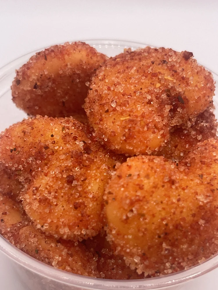 Spicy Mango Gummy Candy dipped in our chamoy sauce and our home-made Xile based spice seasoning recipe.