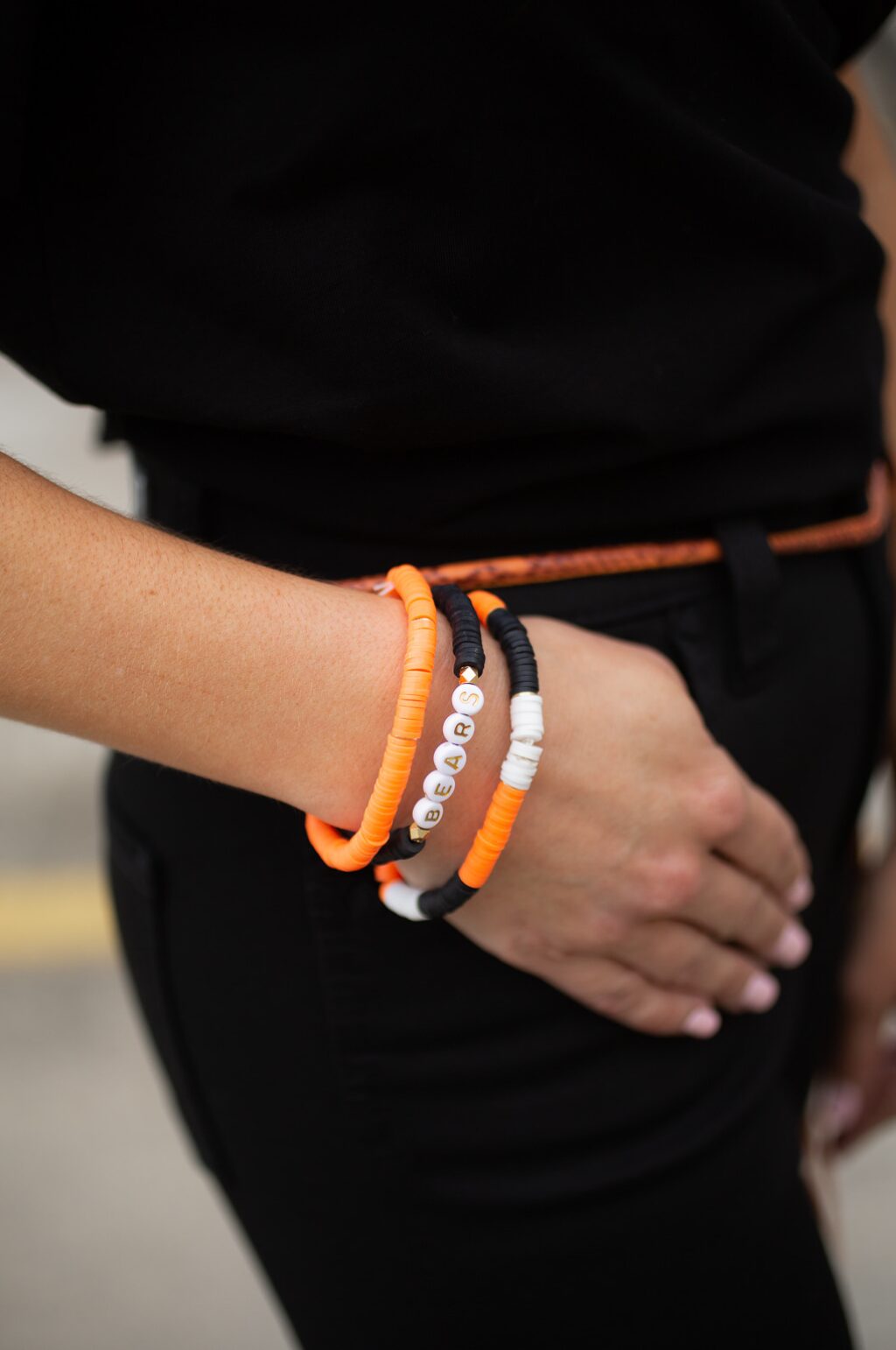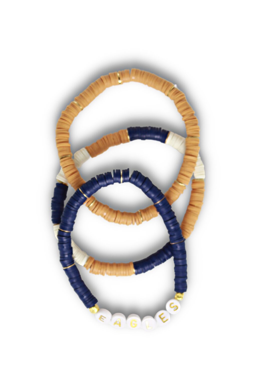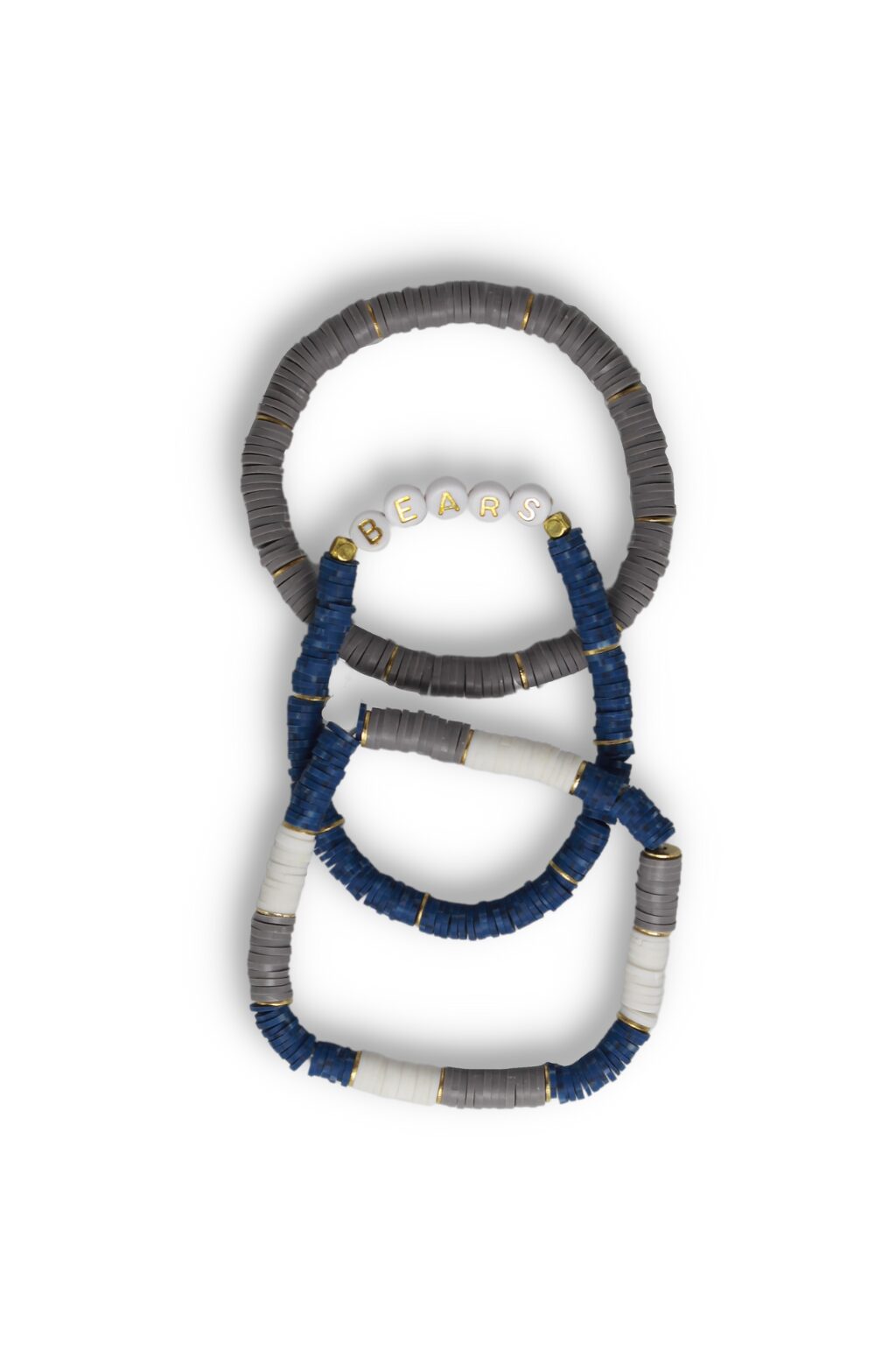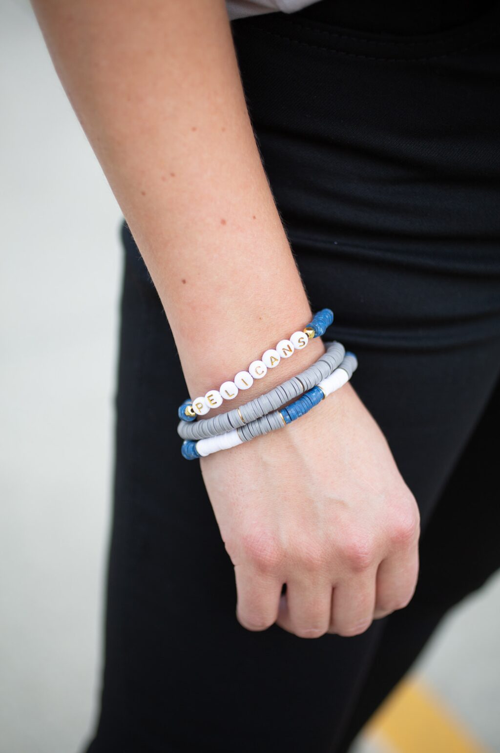 - Stack of 3 heishi bead stretch bracelets – Including one single word bracelet.