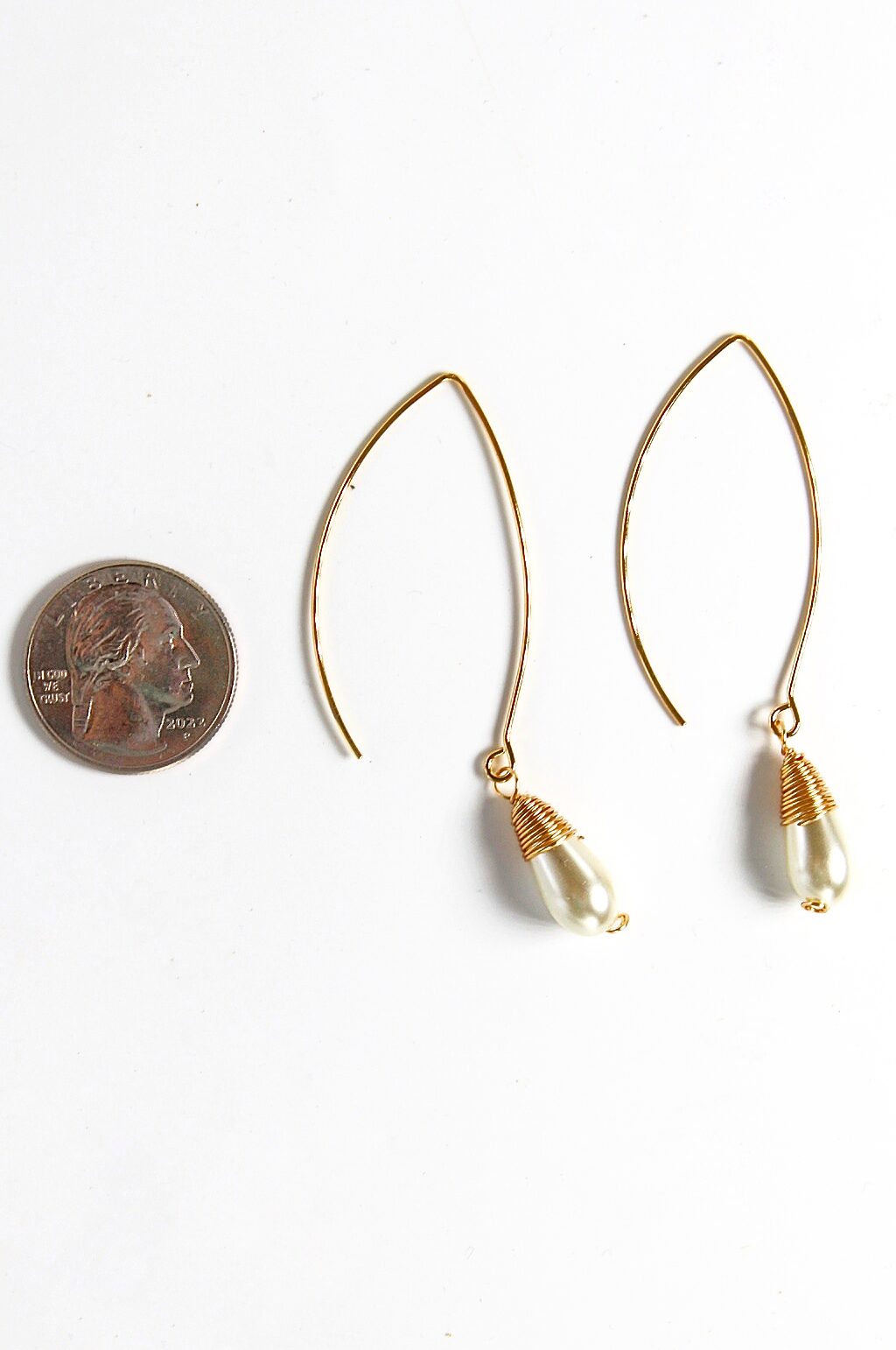 A minimalistic style for our girl with a touch of elegance, the Tear Drop Pearl Earrings are bound to class up any outfit. Freshwater pearls caped with gold wire on a simple long v-shape hook.