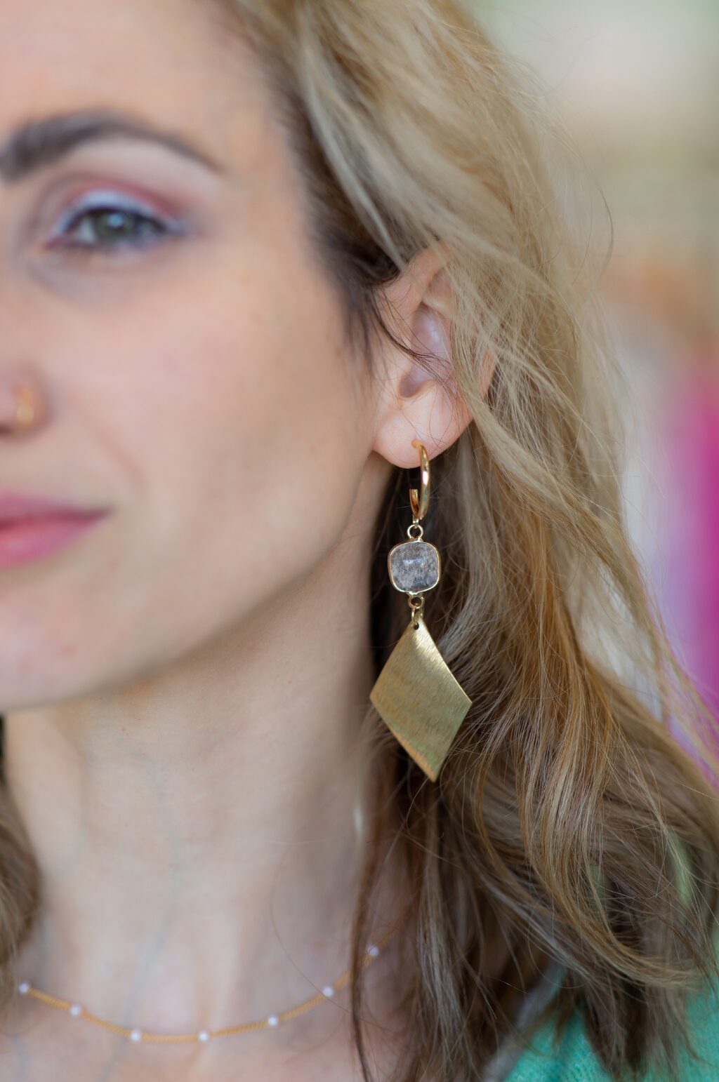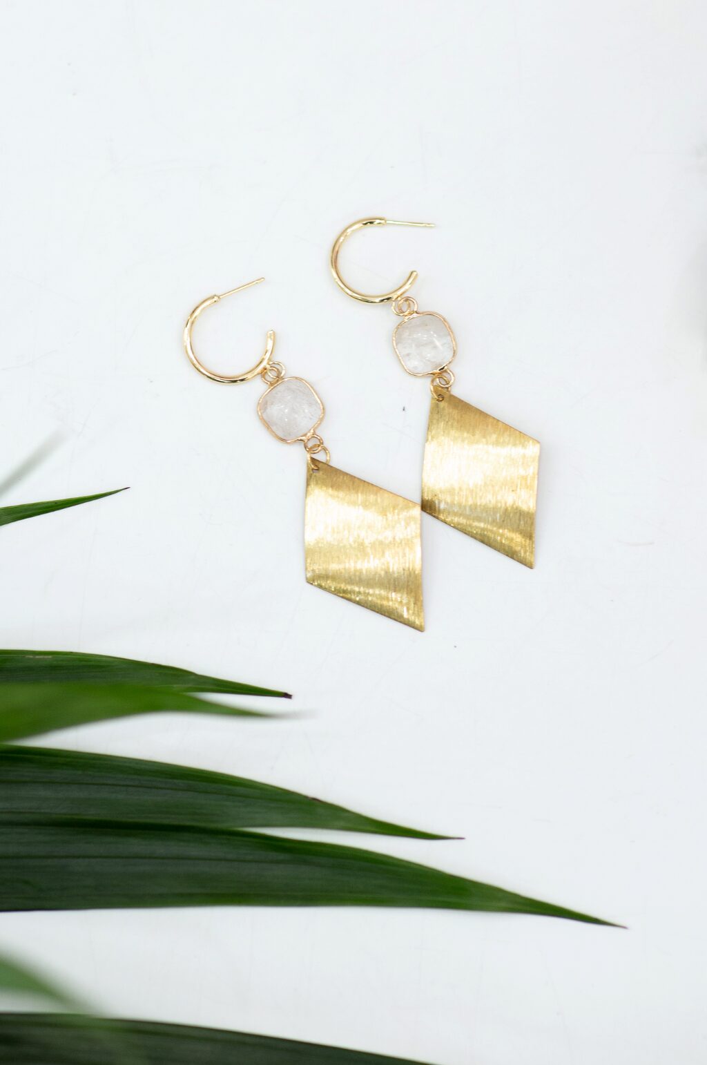 Add a hint of modern glam wherever you go with this stunning, open hoop and gemstone dangle design. The Rachel is available in 3 different colored gems that all can be treated as neutrals, perfect to match any outfit. These sleek earrings will have you feeling confident and sophisticated any day of the week.