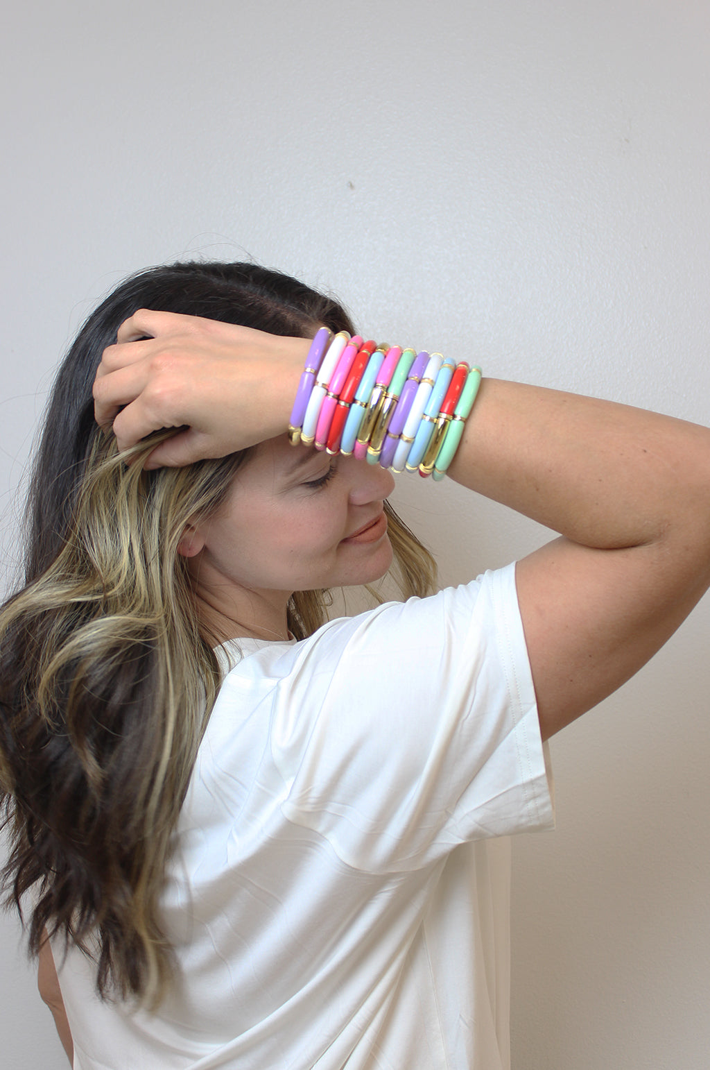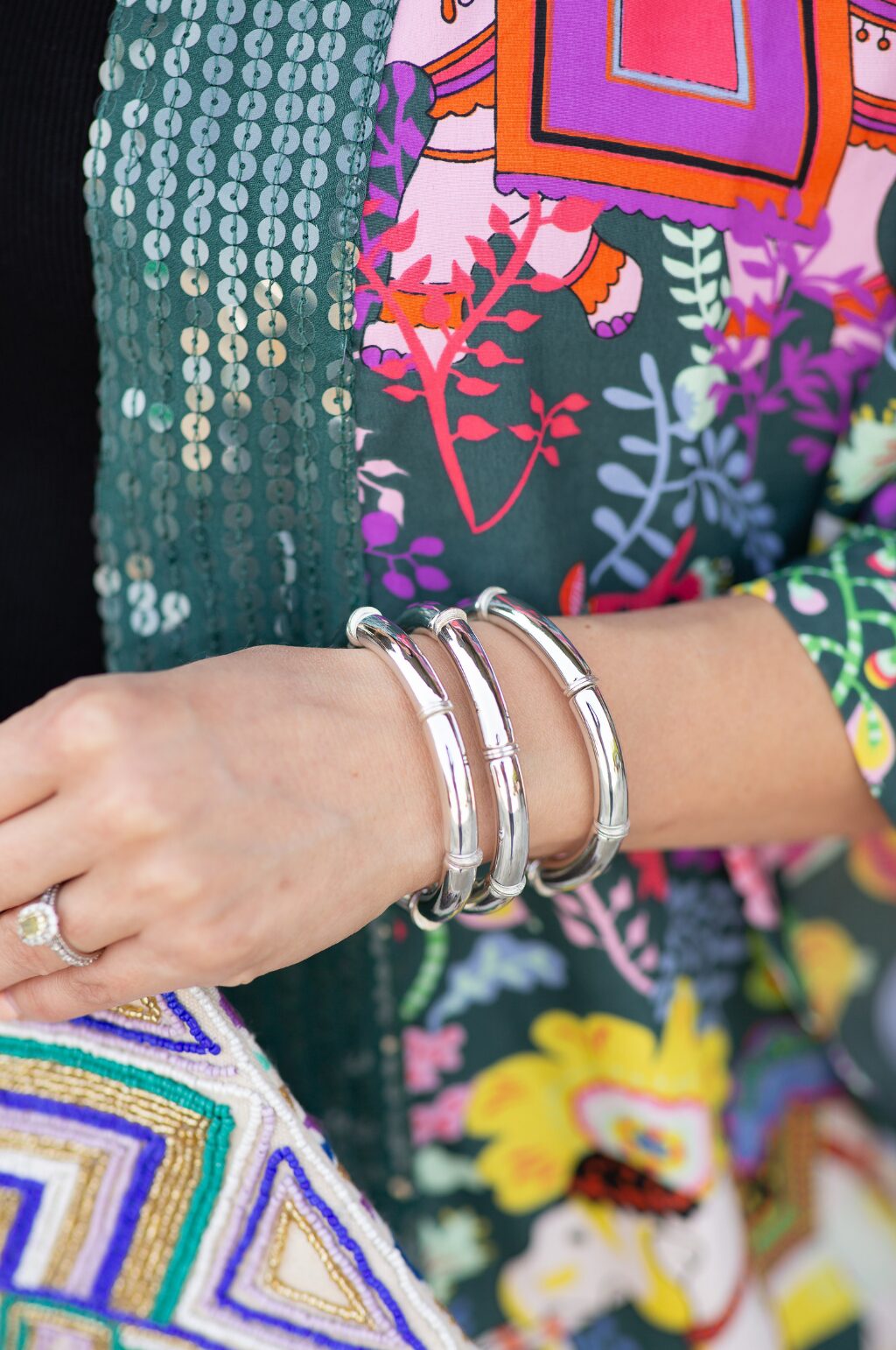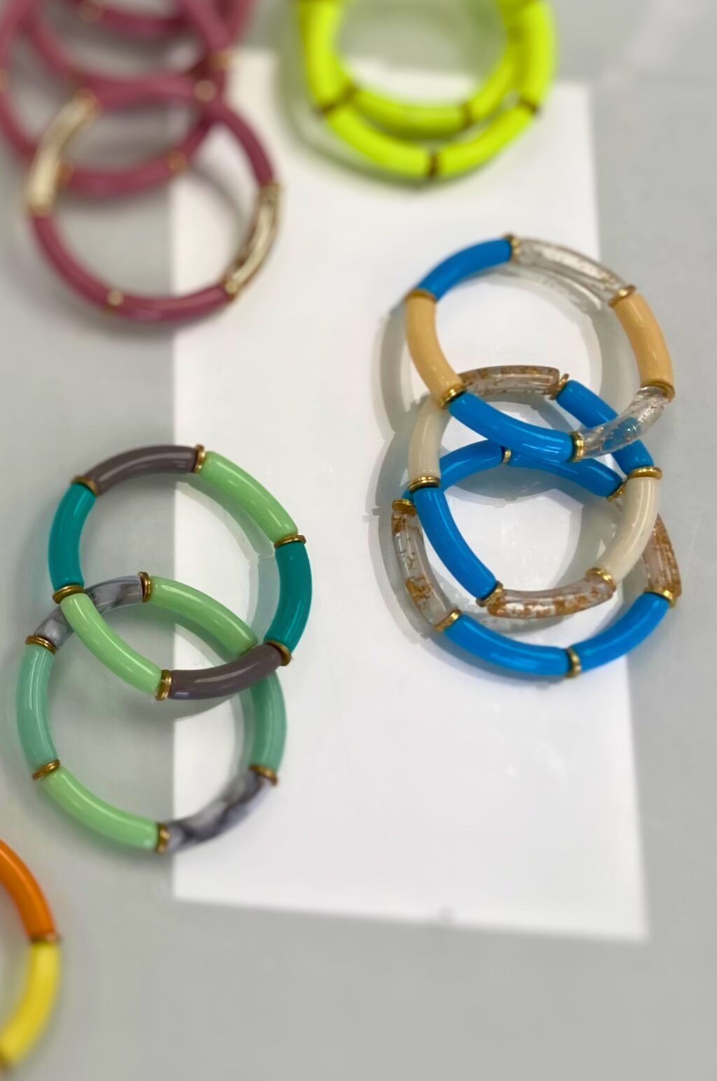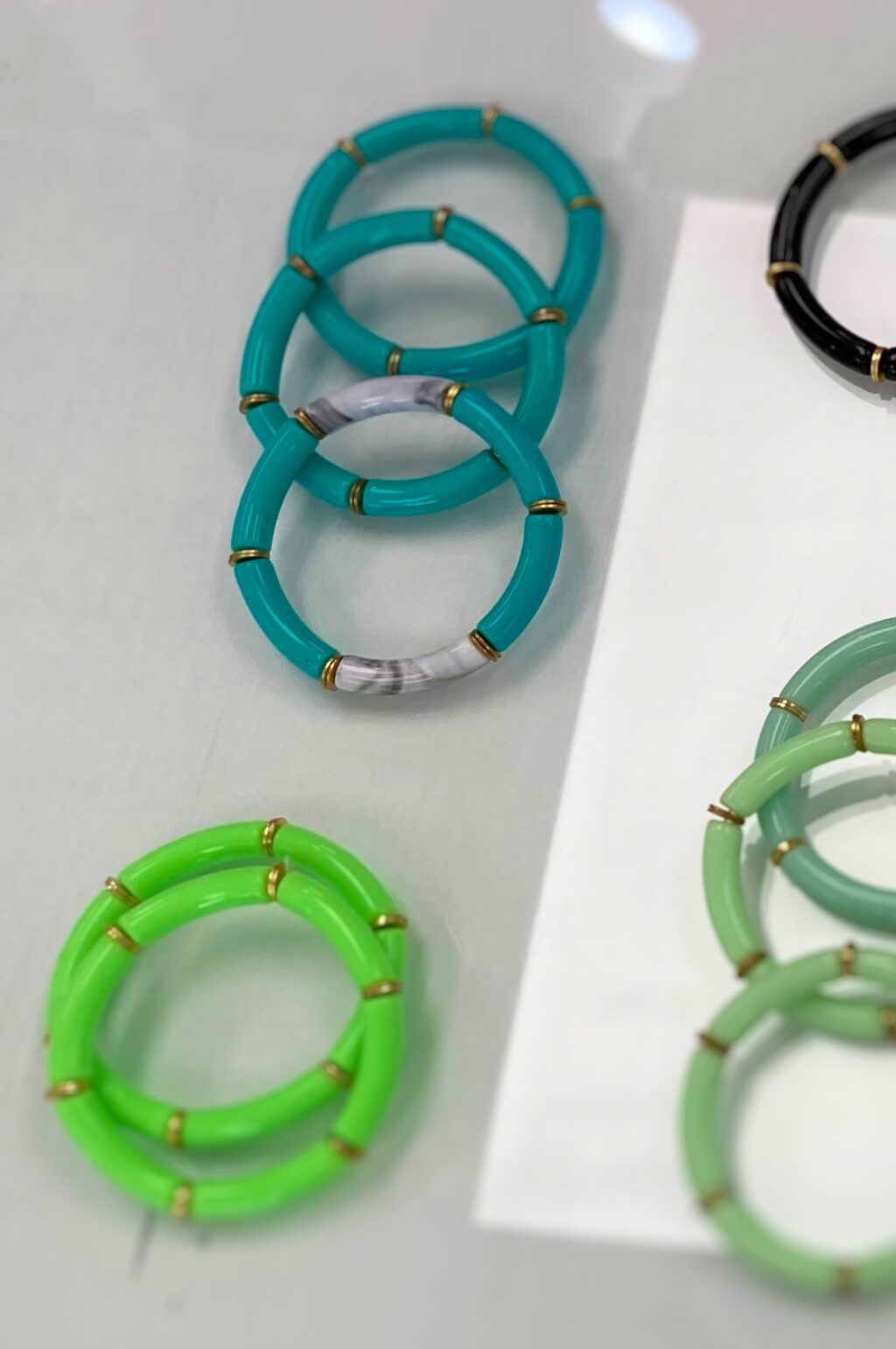 Elevate your wrist game to VIP with these bangle bracelets. Bangles available in a variety of colors with your choice of gold fillers – plain gold accents or gold bars.