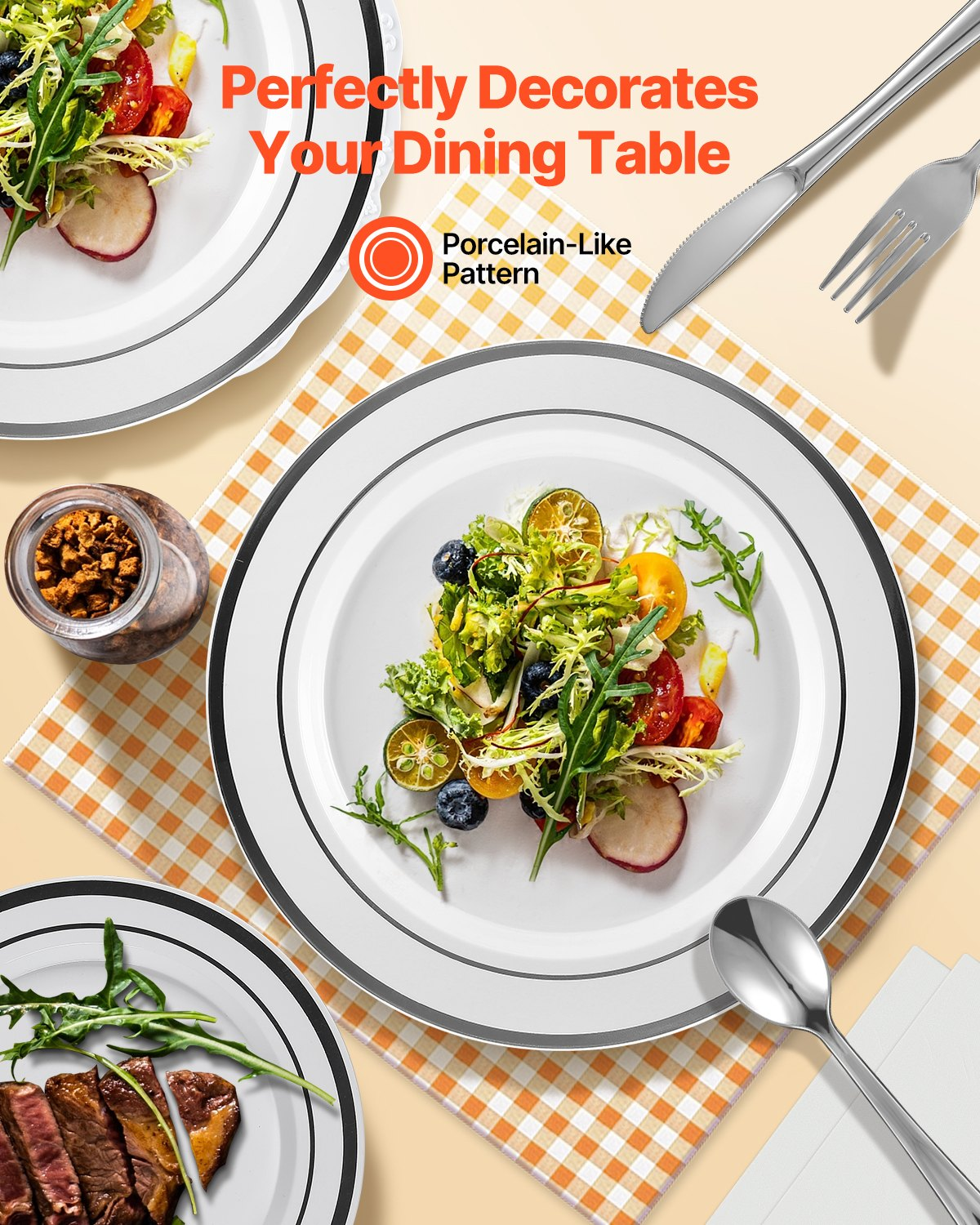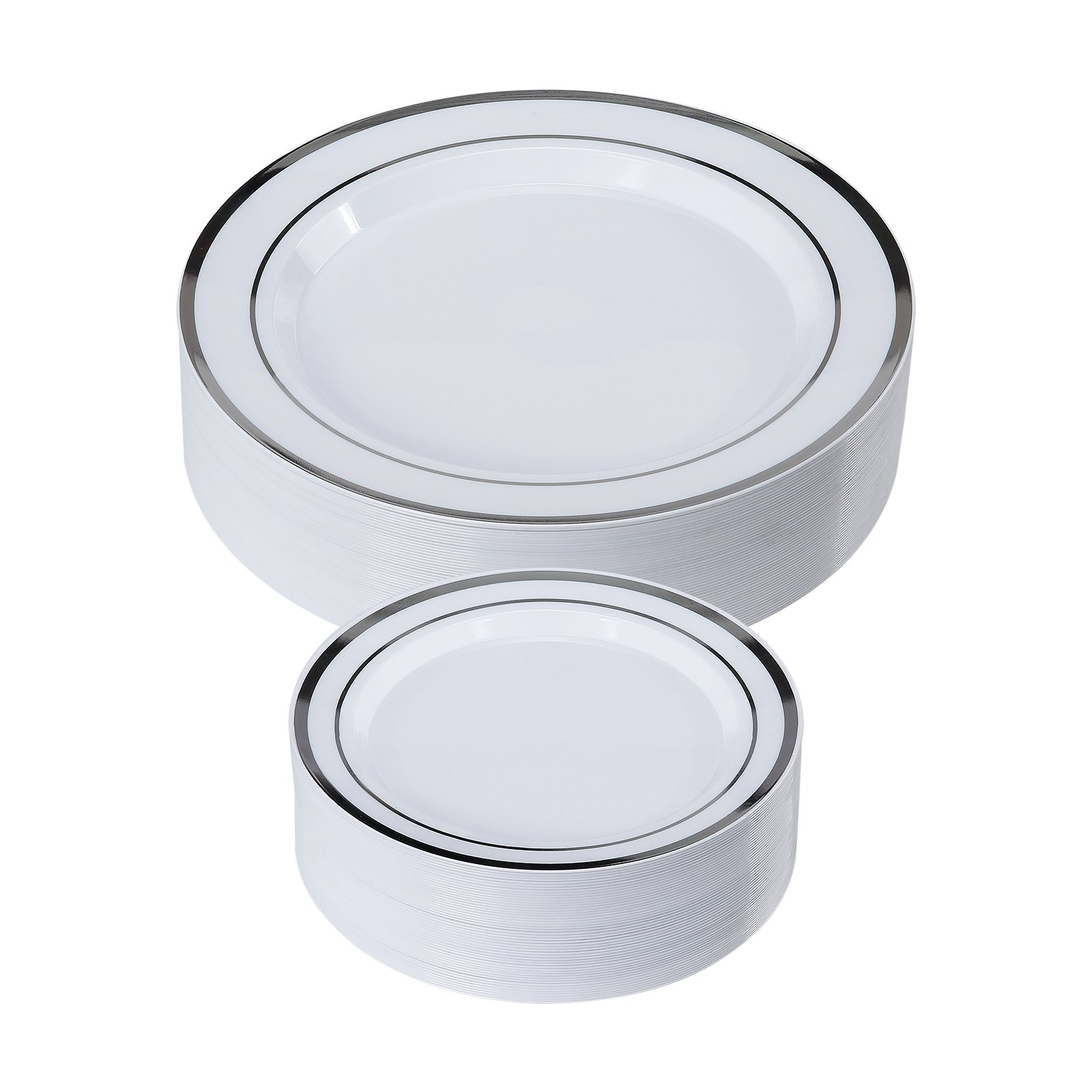 Value Pack: This 350-piece plastic dinnerware set is perfect for parties and weddings.