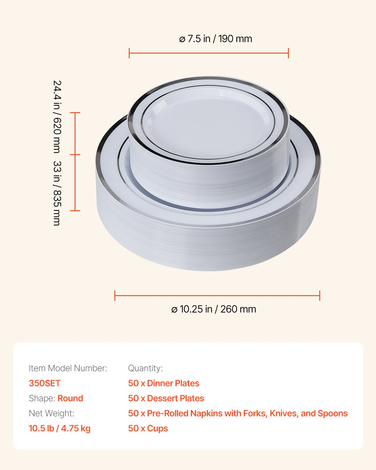 Plastic Disposable 350-Piece Party Dinnerware Set